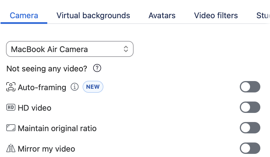 Within Camera (found at the top of the Background and Effects section), be sure that "Mirror my video" is unchecked as shown below, so that the background is properly displayed.