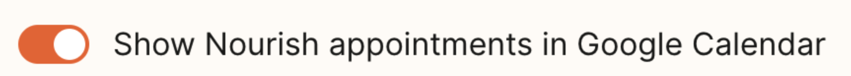 Don’t forget to enable “Show Nourish appointments in Google Calendar” in your Calendar Settings within the Provider Portal, as shown in the screenshot below.