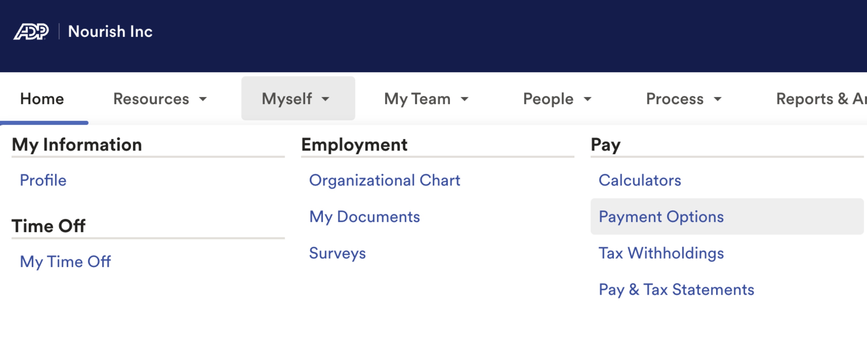 Log into ADP (An ADP invitation will be sent to your Nourish Gmail after you complete your I-9 verification.)