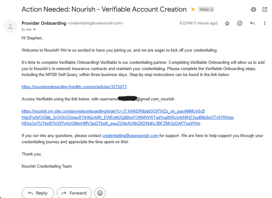 Confirm your Nourish email is displayed. Please only update Personal Email if your non-Nourish email is displayed on this screen.