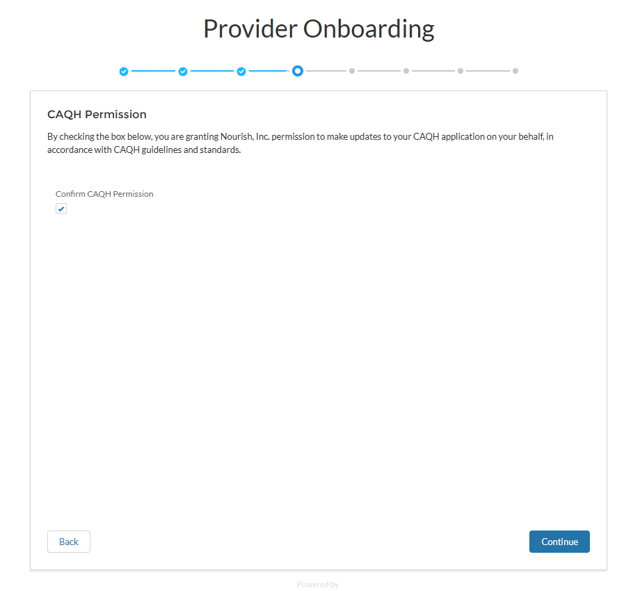 You’ll also provide your CAQH login information and select your opt-in status (whether Nourish updates your CAQH for you).