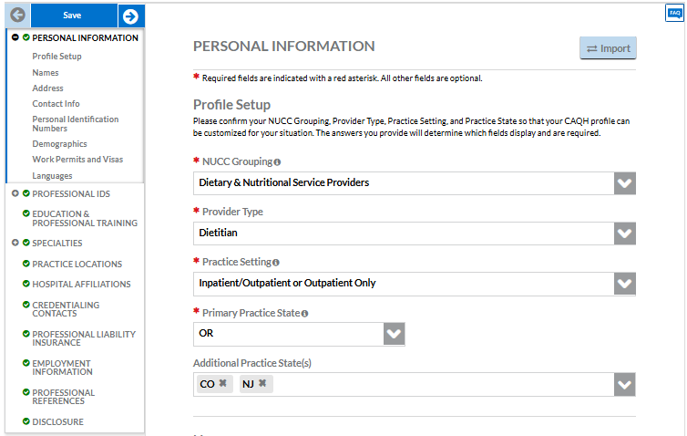 Click here for more information: Why Do I See New Jersey and Colorado Listed in my CAQH Profile?